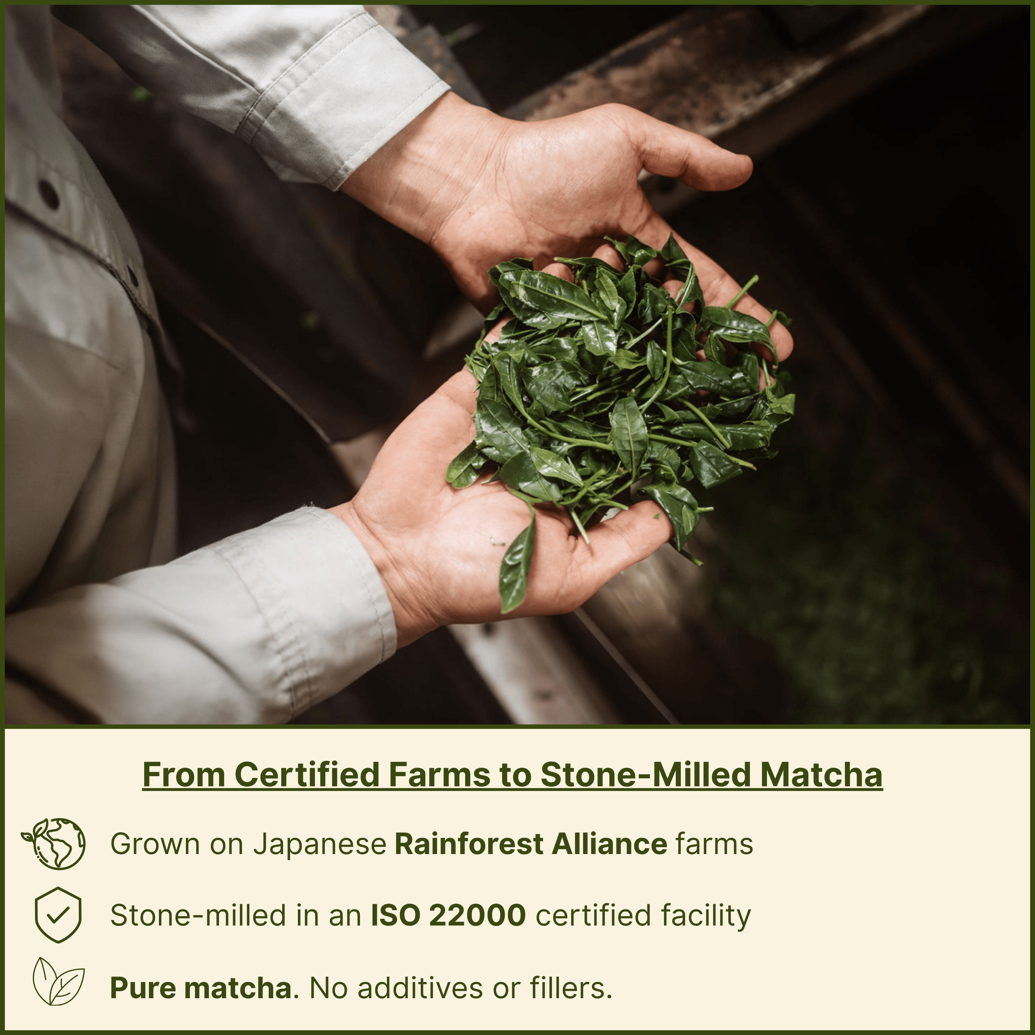 100 percent pure matcha, no additives or fillers